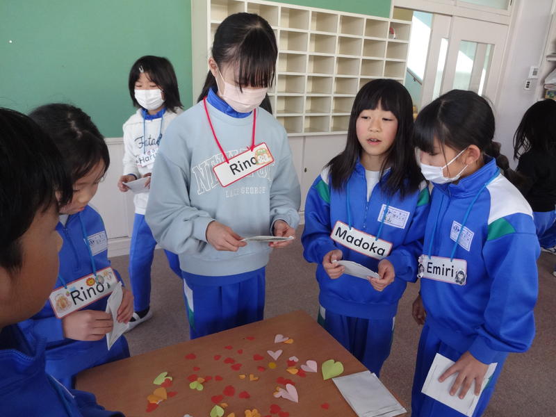 「ありがとうカード」を作る活動では、自分が使いたい色や形、個数を自分で選びました。