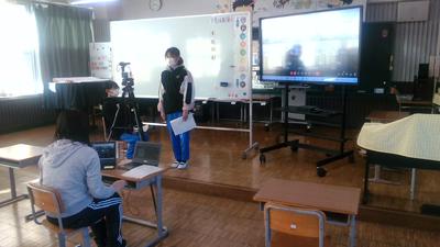 朝行事に音楽集会をリモートで行いました。ボランティア委員の子供たちが司会をしました。今日は、「音楽を楽しみながらお詳しくなろう」をめあてとしてクイズ形式で行われました。