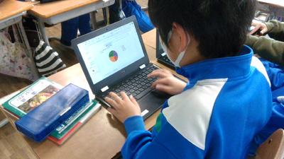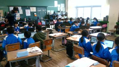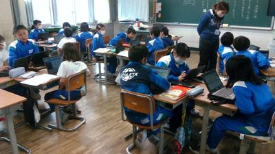 どちらのクラスも、タブレットの扱いに慣れていて、グループの中で話し合いを活発に行っていました。
