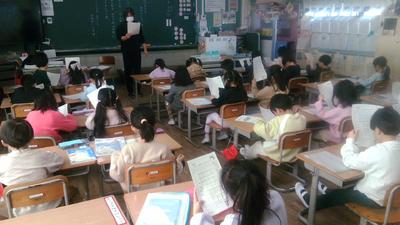 14日間の冬休みを終え、本日3学期の始業式をリモートで行いました。校歌斉唱の後、校長から「一ノ宮小最後の時、今までお話になった方や物へ感謝の気持を伝えよう。そして楽しいさくら小をみんなで作っていこう」と呼びかけました。子どもたちは静粛な雰囲気の中で始業式に参加しました。