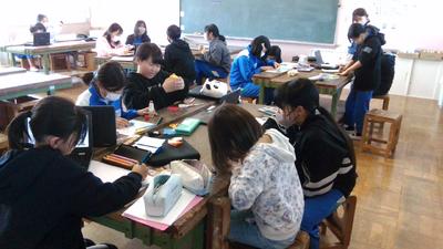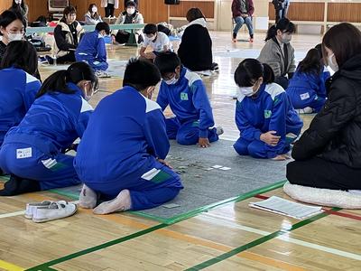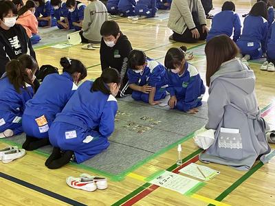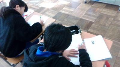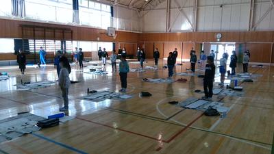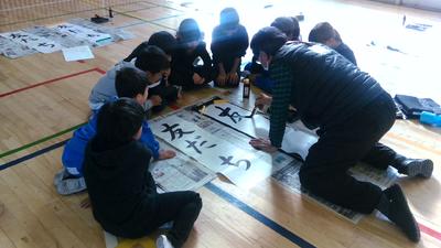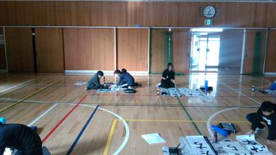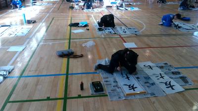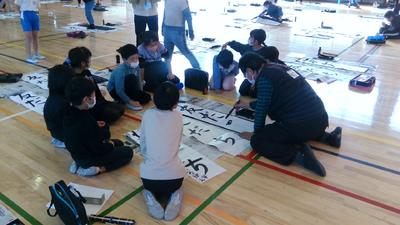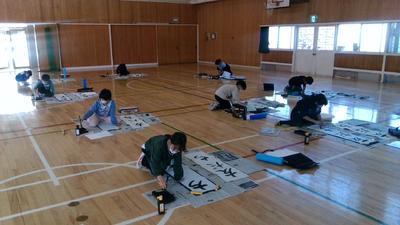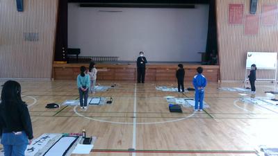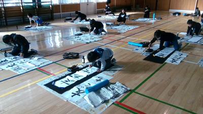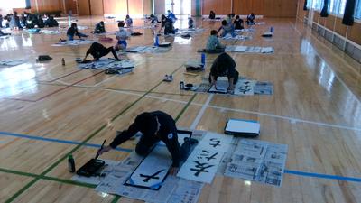 今日の午後に書家の横尾隆雲先生をお招きして、3年生の書き初め練習を体育館で行いました。