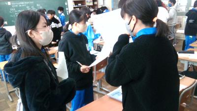 これまでに学習した住生活に関係する仕事の中から、お正月を気持ちよく迎えるための年末の家での大掃除について計画する内容でした。一人ひとりが立てた計画をグループで集まって情報交換しました。