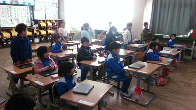 表彰式のあとに、2学期で退職するALTから子供たちへメッセージが有りました。短い期間でしたが楽しい英語の授業をありがとうございました。最後にみんなで教室からお礼を言いました。