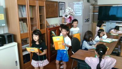 3,4校時に1年生が学校探検で校長室に来ました。「失礼します」「学校探検に来ました」などきとんと挨拶して中を見学しました。