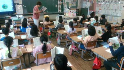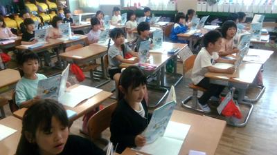 1年生の教室で子どもたちが大きな声で国語の教科書を音読していました。題名は「ねことねっこ」。まだまだ読むのが難しい子供がいますが、一生懸命声を出していました。