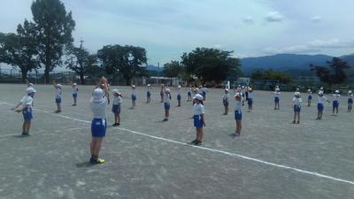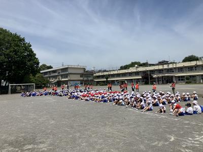 校庭から元気の良い掛け声が聞こえてきました。行ってみると3年生の体育で、準備体操をしているところでした。
