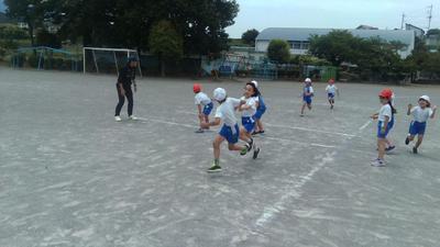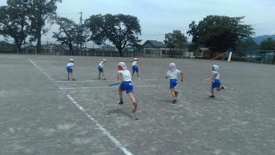 バトンを持つ人が先まで来たらスタートだよ、左手に持つんだよ、などとお互いにアドバイスしながら、バトンを受け渡すタイミングを考えられました。