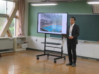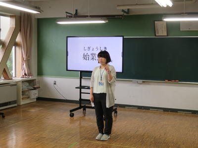 始業式では最初に新しい職員の紹介がありました。続いて校長より夏休みの様子や2学期の目標などについての話をしました。