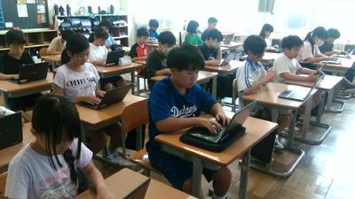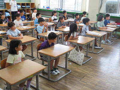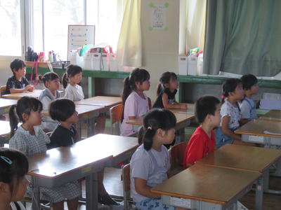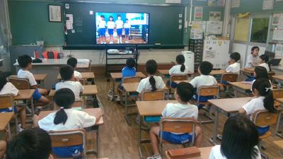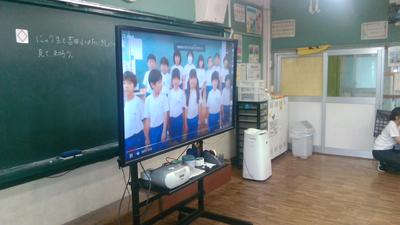 1学期の終わりに送られてきた吉田小からのビデオレターでした。一人ひとり自己紹介をしている様子を興味深く見ていました。