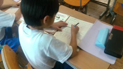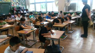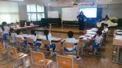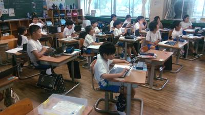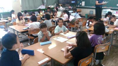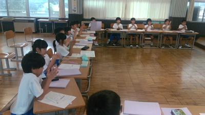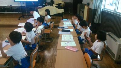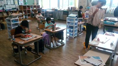 4の2の教室から活発な子どもたちの声が聞こえてきました。