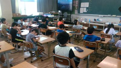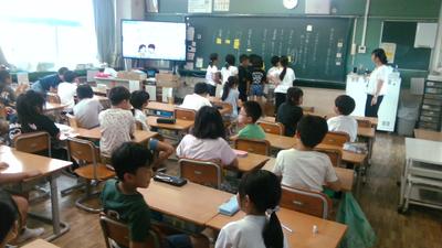 2組の子どもたちが電子黒板の映像に見入っていました。