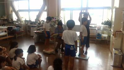 昨日、今日2日間で学期はじめの身体計測を行っています。今日の1校時は3年生でした。
