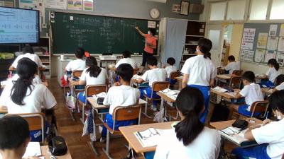 校内研修の一環で、授業公開し、お互い参加しながらj具揚力を高める取り組みが2学期始まりました。今日は6の1の算数の授業で公開がありました。