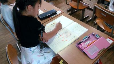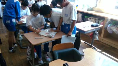 後半は、今後、夏休みの出来事についてタブレットで紹介するための準備を行いました。いつどこで何をしたのか、その時感じたことなど、友達と話ししながらタブレット上にまとめていました。