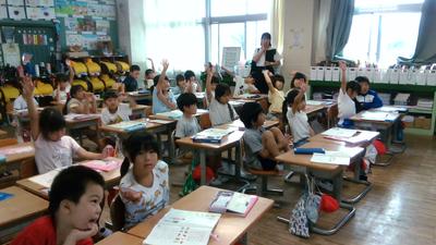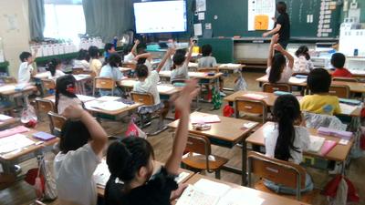 はやいもので二人の教育実習が始まってから4週間近くがたち、間もなく終りを迎えます。今日は4の1で担任の指導のもと、研究授業が行われました。