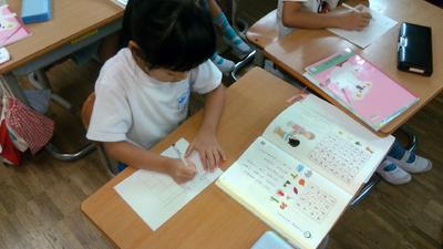 2学期が始まって1週間、生活リズムも慣れてきて、各クラスで授業が本格的に始まりました。ゆめ組の教室をそっと覗いてみると、とても集中して取り組んでいる様子が見られました。