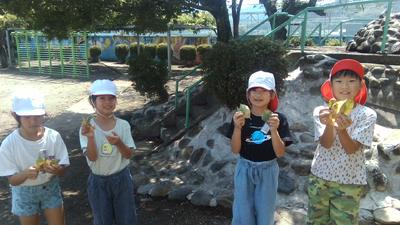 今日はまず、校庭で自分の気に入った葉っぱを集める活動を行いました。