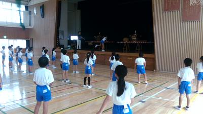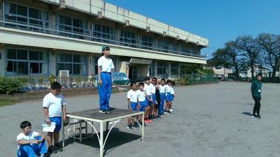 次にラジオ体操のやり方について、体育委員が模範を示しながら確認しました。