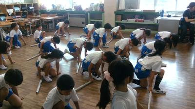 初めての練習で、どちらの学年も二人で息を合わせるのが難しいですが、声をかけながら頑張って練習していました。