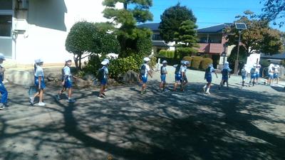 今日の午前中2,3校時に3年生がヤオコーに校外学習に出かけます。いま校庭を元気に出発しました。