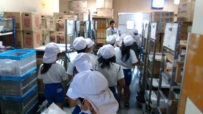 商品の流通のことについて話を聞いたり、商品になる前の肉や魚の実物を実際に見せてもらったり、興味深く見学していました。
