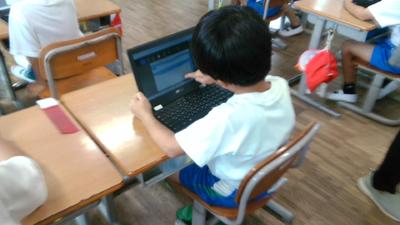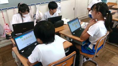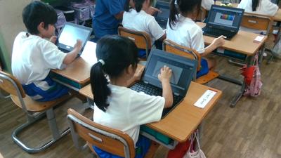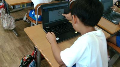 午後、1年生が一人ひとりタブレットに向かっていました。