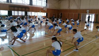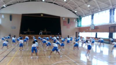 1,2時間目に低学年の子どもたちが、校庭でダンス練習をしていました。