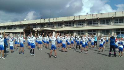 明日のお昼の活動で運動会結団式が予定されています。今日の昼休みに団役員と計画委員、体育委員がリハーサルをしていました。