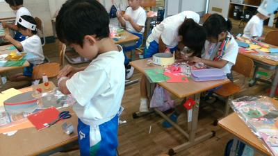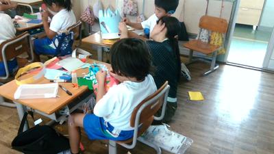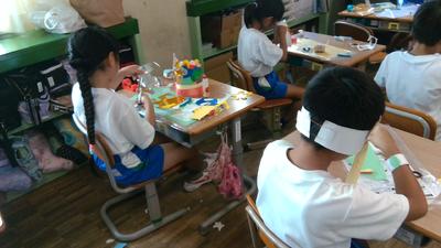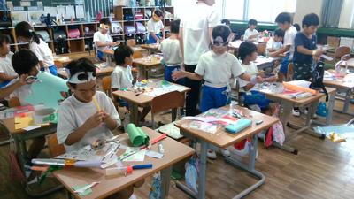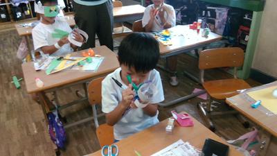 2の1の子どもたちが仮面や刀のようなものを作っていました。