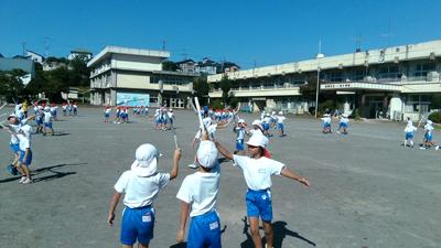 午前中に3,4年生が校庭でダンス練習をしていました。今週はどの学年も、運動会の練習が校庭へと移り、本番の位置確認をしながらの練習となってきました。
