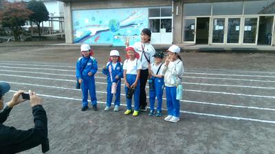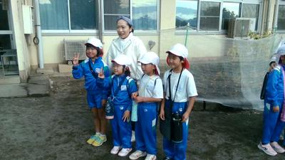 今日は午前中に2年生が町探検に出かけます。各グループ別に2箇所探検します。ボランティアの保護者の方が一緒についてくださいます。各班ごとに記念撮影をしました。