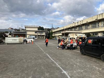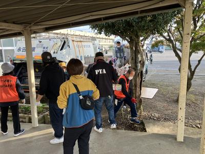 その後は、各地区委員の皆さんが地域の廃品を回収して校庭に運んでくださいました。