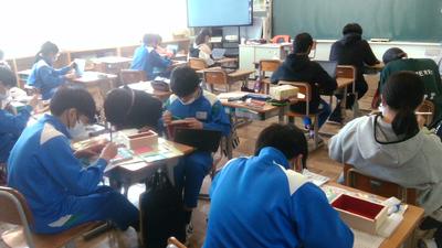 今日の午後の6年生の教室では、卒業制作の仕上げを行っていました。