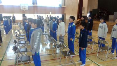 1校時に修了式を行いました。5年生の代表が学校代表として修了証を受け取りました。校長からは3学期の目標や教育目標の振り返りを行い、頑張ったことを伝えるとともに、飛び出しによる交通事故に気をつけ、新学期に元気に合う約束をしました。