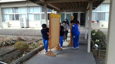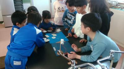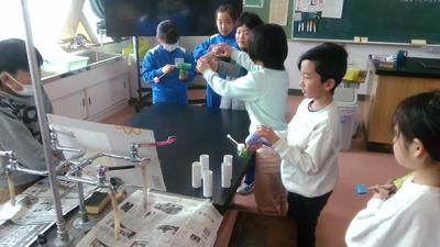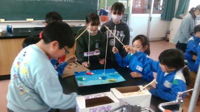 3の1の子供たちが理科で学習した磁石や輪ゴムなどの性質を活用して遊びを考え、2の2の子供たちにやり方を説明し、一緒に遊んでいるところでした。3年生のわかりやすい説明があり、2年生は感謝の言葉をきちんと伝えていました。