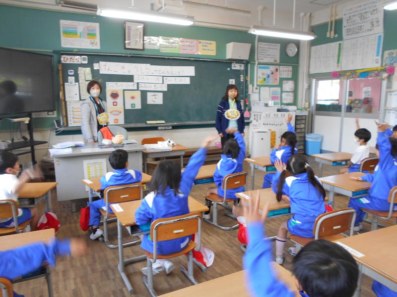 クイズ形式で「お口のたいそう」、「耳のたいそう」、「パンとクイズ!」を行った後、実際に言語指導教室の中もぐるりと1周探検しました。みんな約束をきちんと守り、静かに教室内を見て回ることができました。お友達がことばの教室に行くときは、「いってらしゃい!」と声をかけて見送ってほしいことも伝えました。楽しんで通えるように言語指導教室一同、工夫して指導していきます。